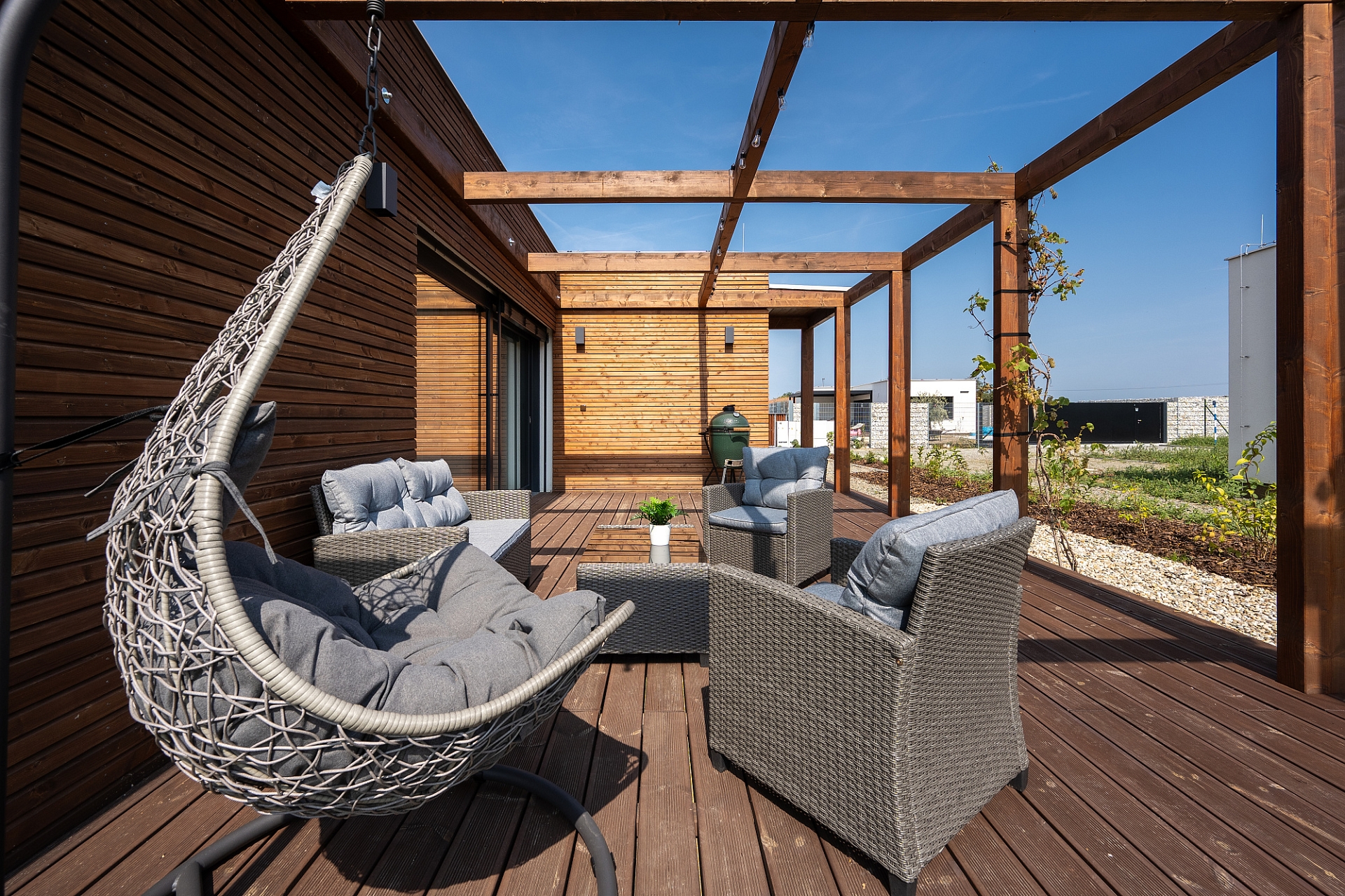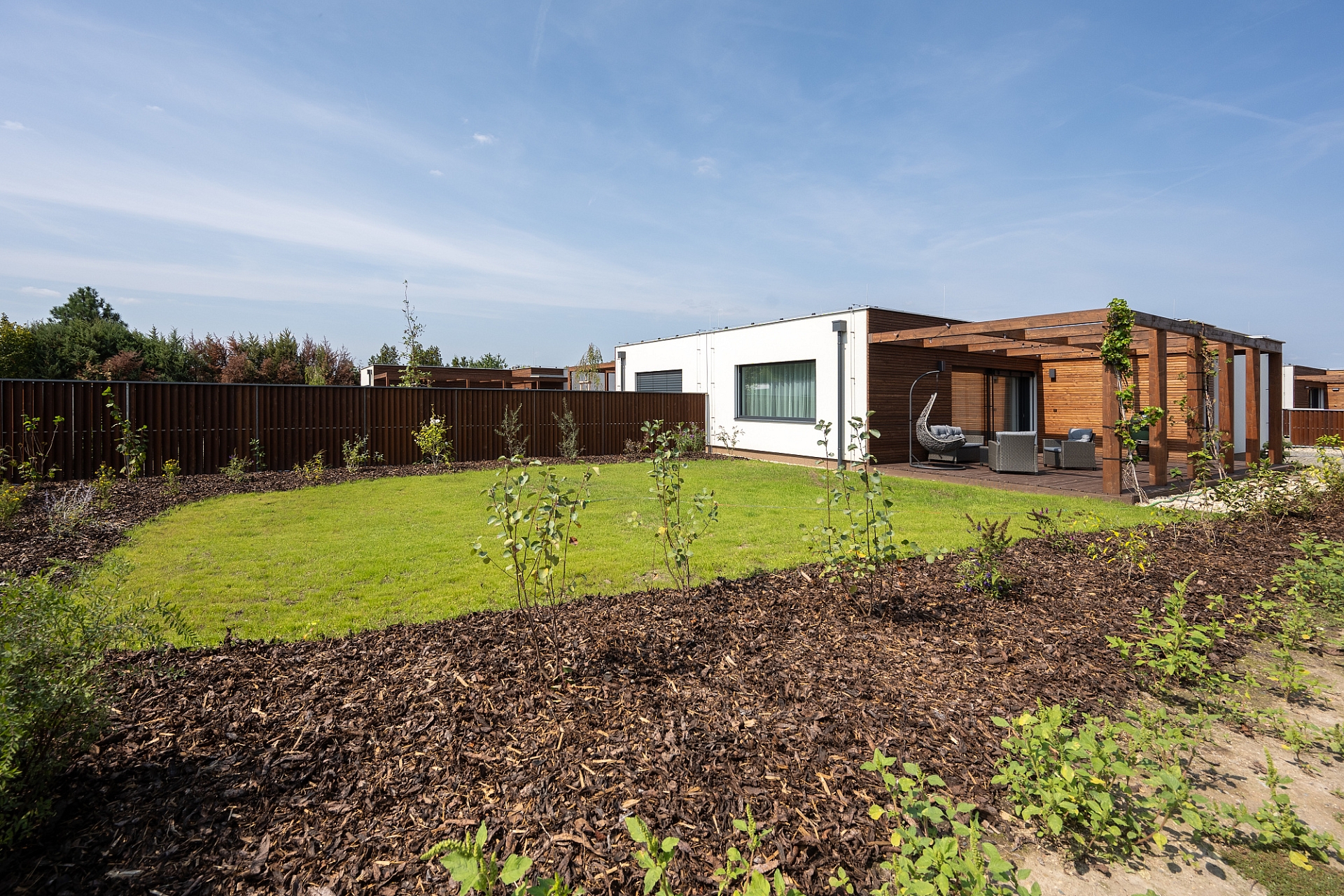 Moderní dům 3+kk s prostornou terasou, zahradou a parkováním. Praktické řešení pro rodinu i rekreaci.